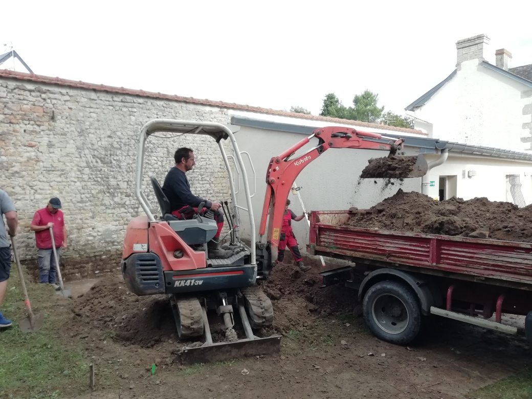 Entreprise GEODOME et Entreprise LEGUELINEL : Travail en coactivité permettant le renfort de bénévoles sur le chantier et ainsi abaisser le coût.